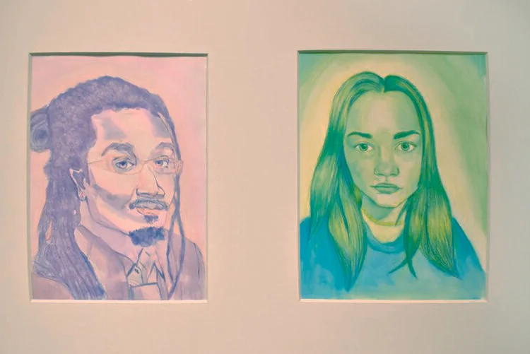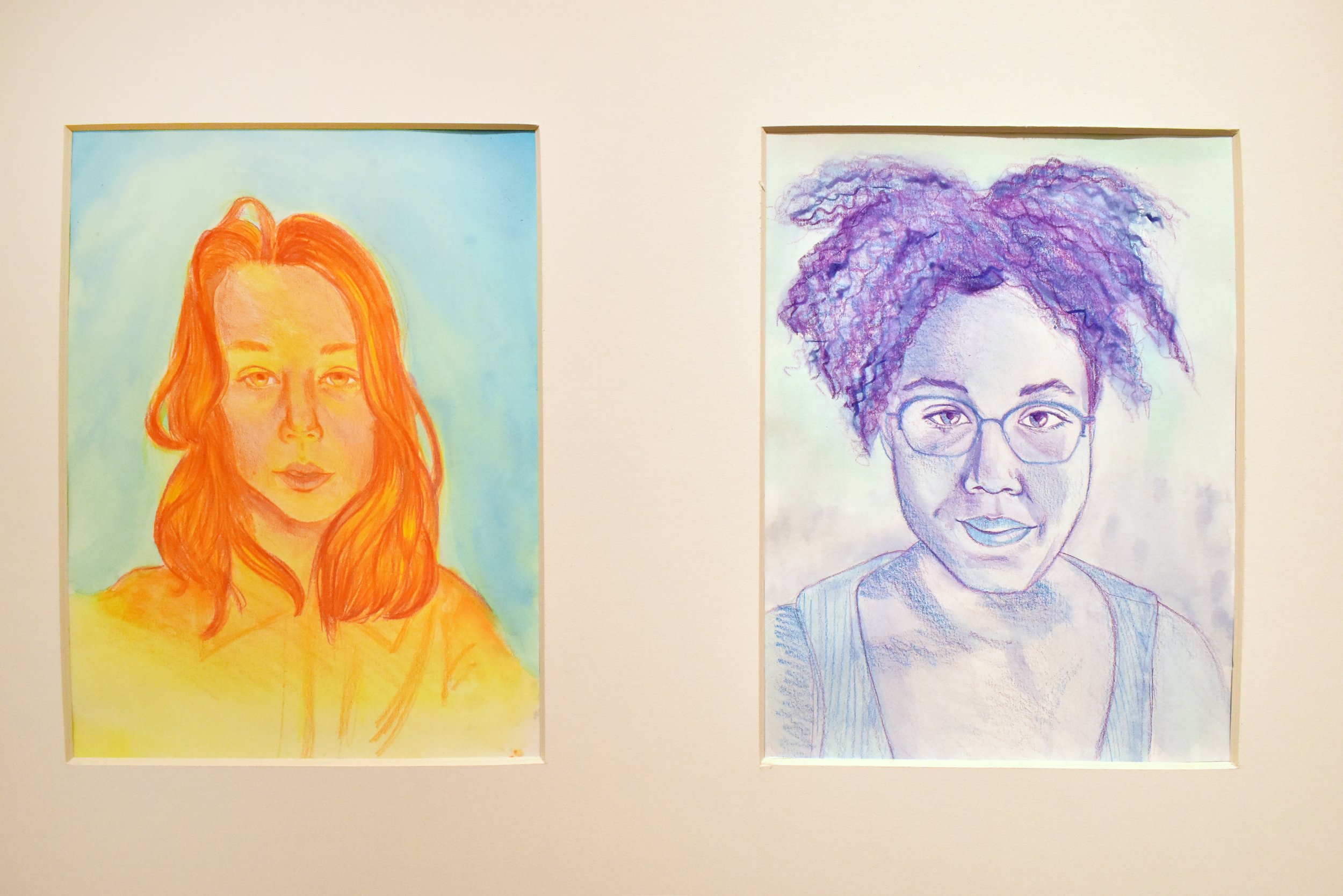 After that, I traveled to the Cornell Creative Arts Center to see the Senior Exhibition that was on display. My friend and fellow PUGG member Vera Wilde was among the artists. Her portion of the show consisted of a short series called “True Colors” in which she composed portraits of friends and family with specific palettes of two to three colors to show how she feels about them. She encouraged viewers to interpret the colors their own way. I personally didn’t receive any negative feelings from the portraits. I saw warm active love and cool passive love, as well as mixtures of the two for a couple people. I sensed a level of nuance to each color choice. Beyond color, the portraits themselves were drawn skillfully, with careful attention to the expression of their faces. The light reflections added to their eyes was a detail that gave these works a lot of life.