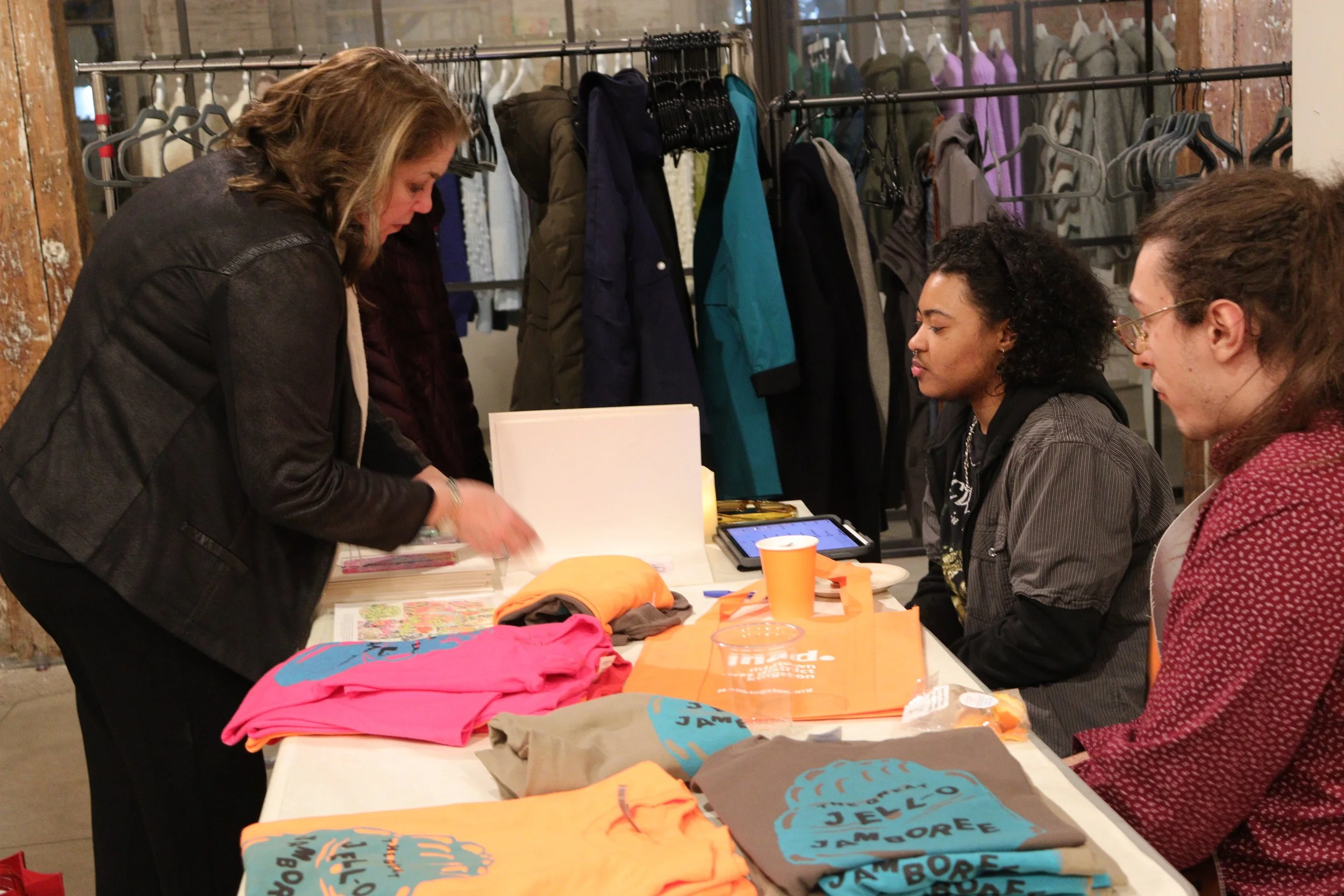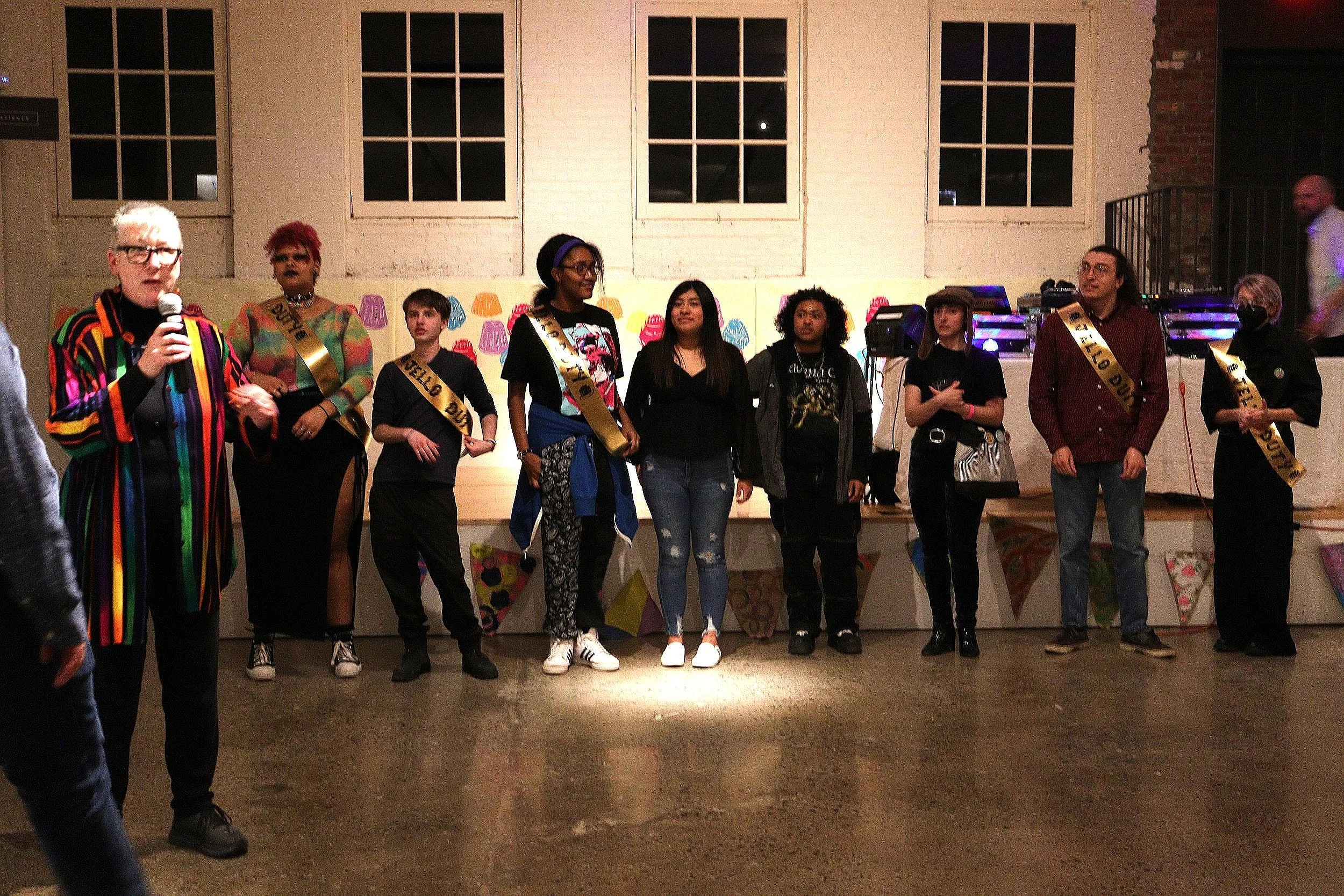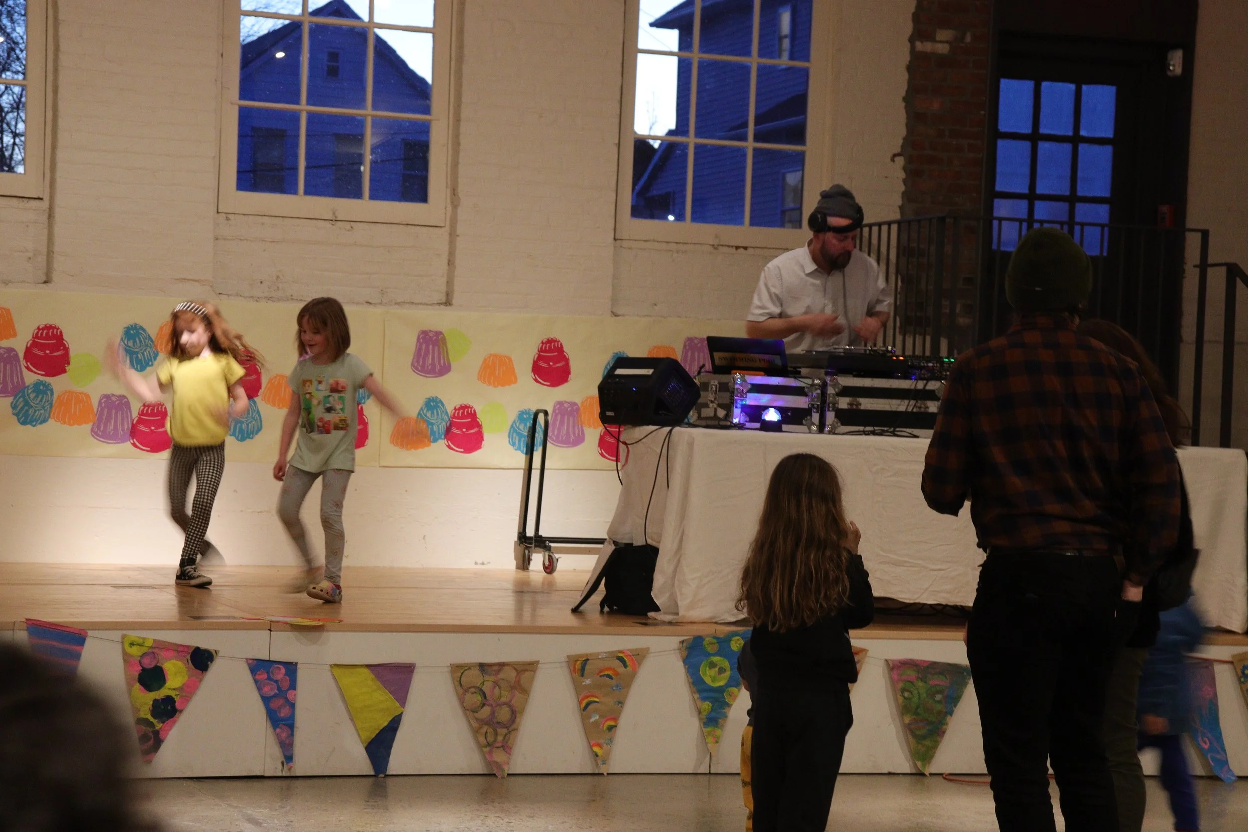 The Jamboree was held at the Fuller Building across from Kingston’s YMCA. They generously gave the D.R.A.W. use of the lobby area and stage in the back, as well as a room where all of the Jell-O sculptures were kept. The DJ was set up on the stage. Food, drinks, and merchandise were available in the lobby. I arrived just after the party had begun. Energetic dancing music pulsed all the way through the building. The place was packed. The turnout was overwhelmingly high and it was satisfying seeing all the attendees partake in Jell-O shots, buying our merch, and spinning the prize wheel. The prize wheel was especially popular and we had to recycle tickets a couple times to keep up with demand.